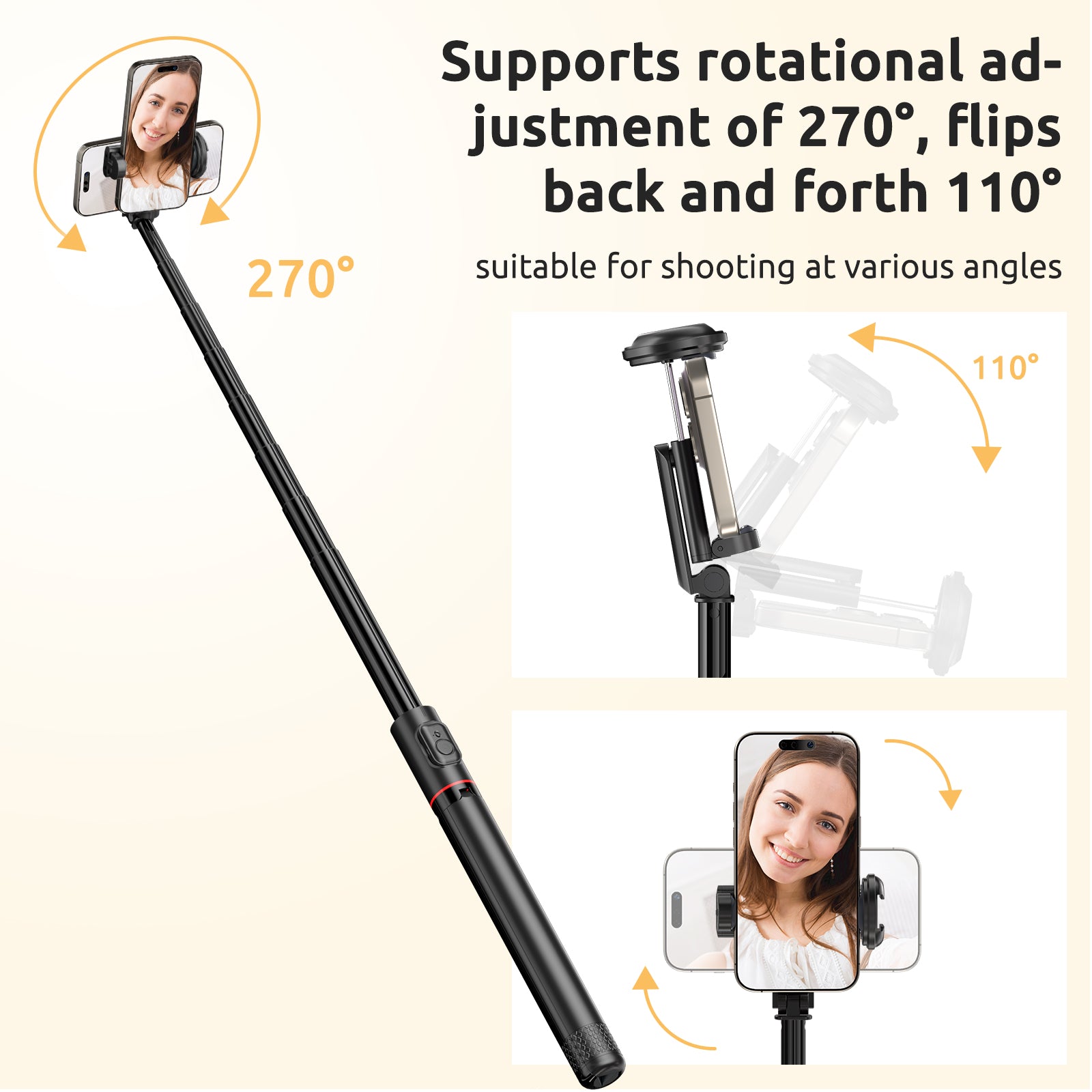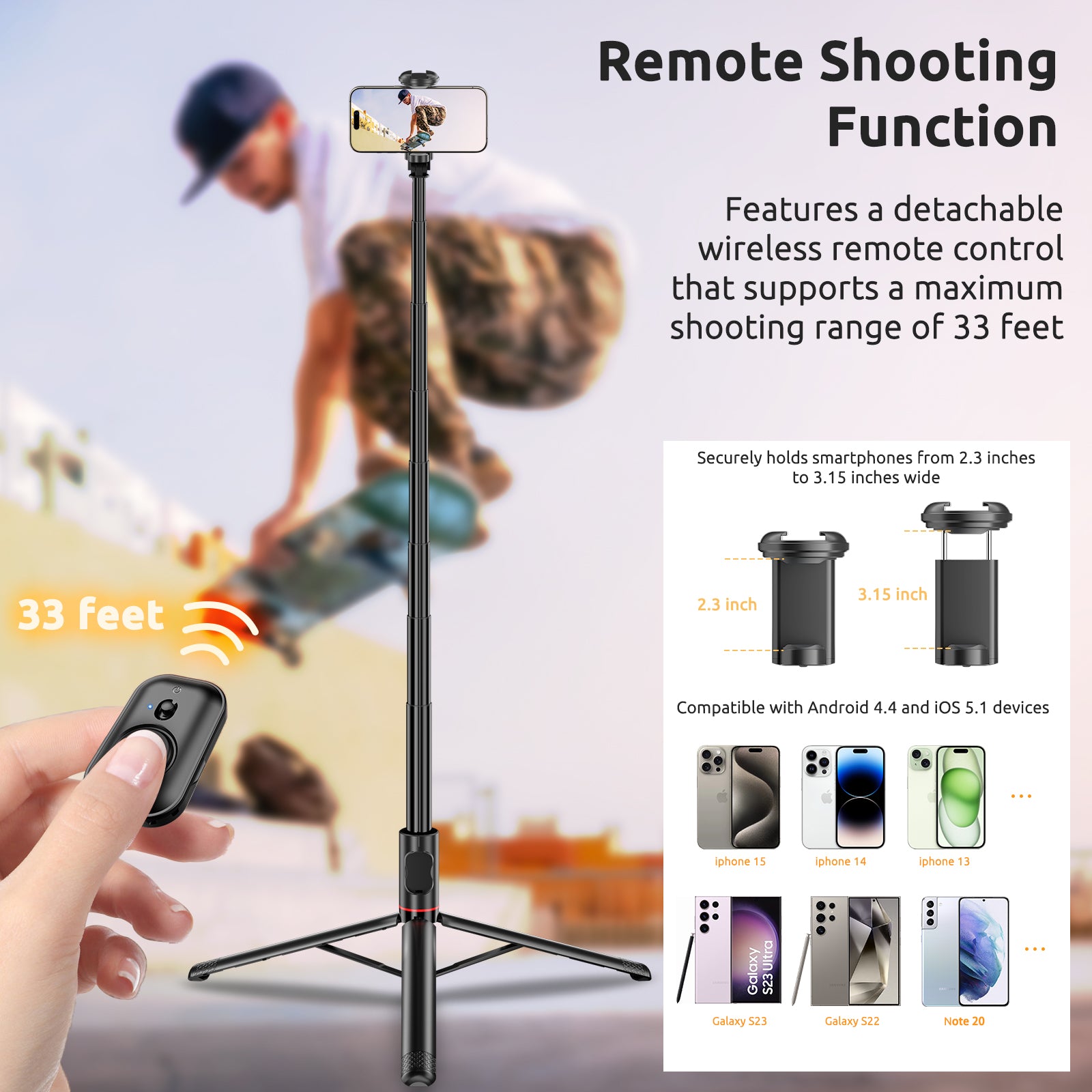 Capture every moment effortlessly with the aLLreLi 72" Phone Tripod and Portable Selfie Stick. This versatile device is perfect for selfies, videos, photos, live streams, and vlogs. Compatible with iPhone 15/14/13 and Android devices, it features a universal cold shoe mount for added flexibility. The included remote ensures you can take the perfect shot from a distance. Whether you're a professional vlogger or just love taking photos, this tripod is your go-to tool for capturing high-quality content. Available in sleek black.